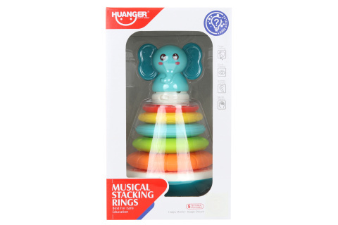 Sloup s kroužky a slonem na baterie. Po vložení jednotlivých kroužku hračka vydává zvuky a hraje melodie. Napájení na 2 AAA baterie (nejsou součástí). Rozměry cca 14 x 14 x 22,2 cm. Rozměry balení cca 16 x 27 x 16 cm. Věk 6m+ przeczytaj całość