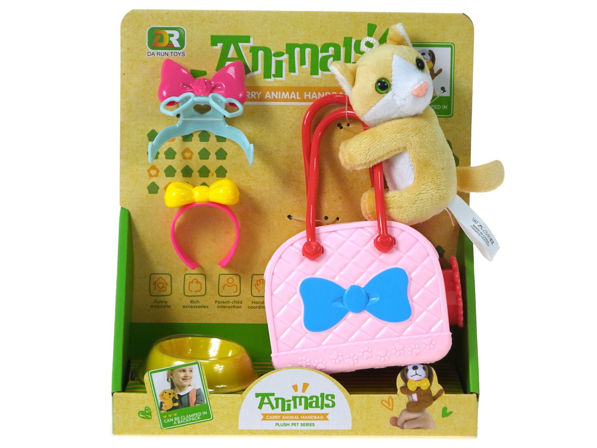 Plyšové kotě 12x6x6cm, s taškou a doplňky; 24x21,5x18,5cm,