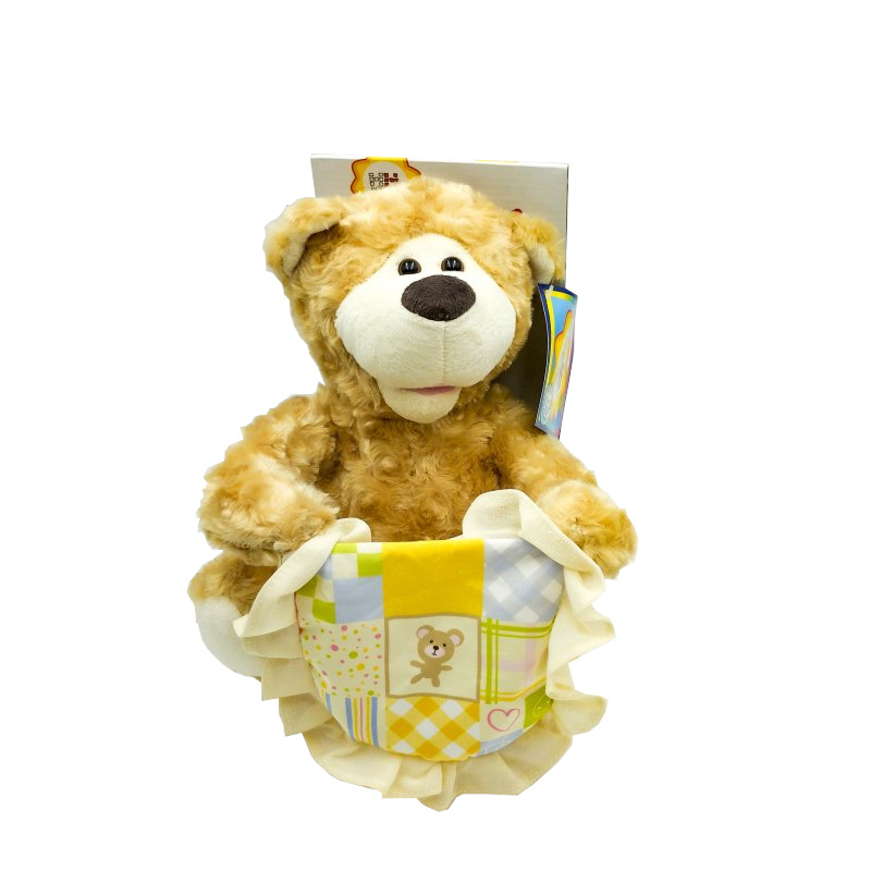 Maskotka Miś ''A KUKU'', która wydaje dźwięki oraz bawi się w chowanego za pomocą swojego kocyka. Dziecko uruchomi go za pomocą jego stópki (oznaczona jest napisem PRESS ME). Miś jest przyjemny w dotyku. Uwagę w nim przyciągają czarne oczy z brązową tęczówką oraz piękna, uśmiechająca się buzia....