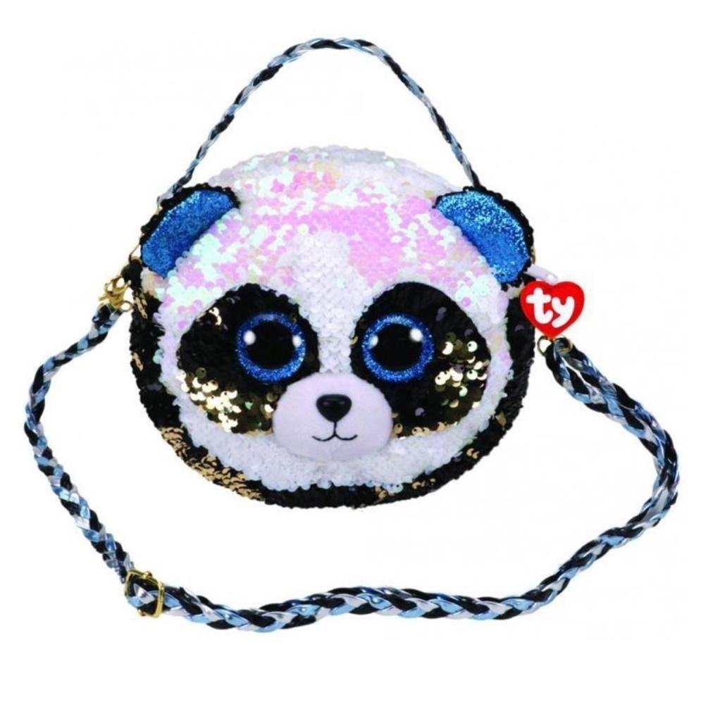 Cekinowa torba na ramię z postacią Bamboo, cekinowej pandy. przeczytaj całość