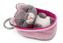 NICI 49989 Brelok Sleeping Pets kot szary 8cm, koszyk różowy