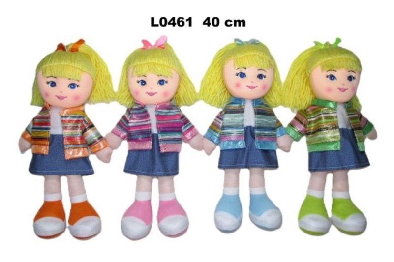 Pluszowa lalka o wysokości 40 cm to urocza przyjaciółka do zabawy i przytulania. Każda lalka ma jasne włosy z grzywką i kokardką oraz kolorowy strój – jeansową sukienkę i tęczową marynarkę w różnych wariantach kolorystycznych.Wykonana z miękkiego pluszu, jest przyjemna w dotyku i bezpieczna dla...