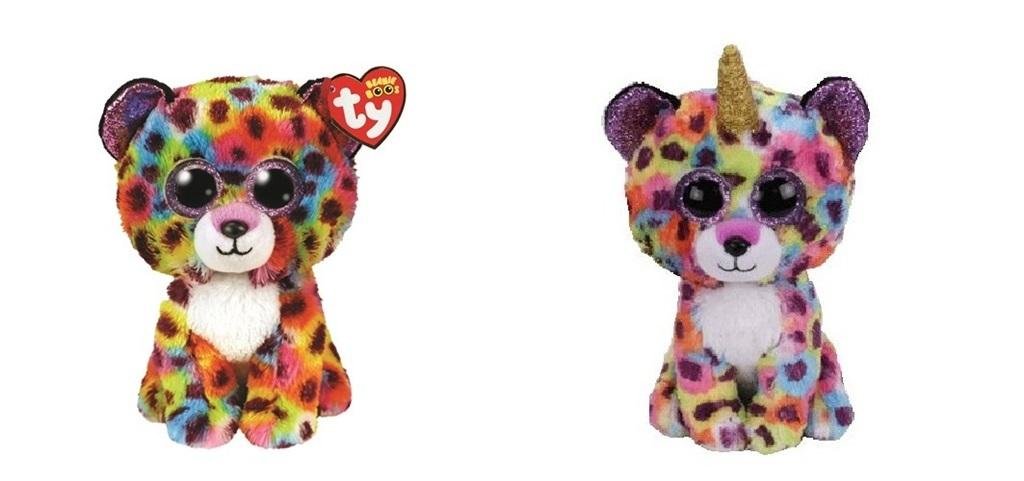 Uroczy tęczowy Lampart Jednorożec z popularnej serii maskotek TY Beanie Boos. Wyjątkowo miękki materiał, piękne kolory i duże, błyszczące oczka przytulanki zachwycą każdego malucha.Wysokość maskotki: około 15 cm przeczytaj całość