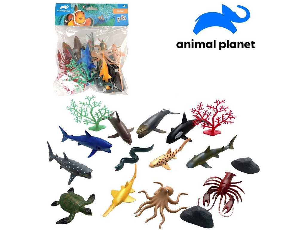 Morskie zwierzątka, 16 szt., 11,3 cmZabawka przeznaczona dla dzieci 3+.Wymiary zabawki: 11,3 cm.Materiał zabawki: PVC.Opakowanie: woreczek. Aplikacja rozszerzonej rzeczywistości (AR) do pobrania z kodu QR na opakowaniu produktu. Licencja Animal Planet. Wyprodukowano z materiałów z recyklingu,...
