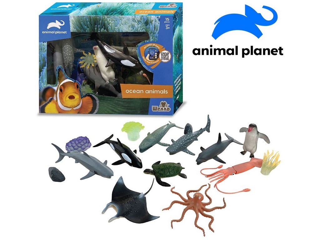 Zvířátka mořská, 15 ks, mobilní aplikace pro zobrazení zvířátek, 16,2 cmHračka je určena pro děti 3+.Rozměr hračky je 16,2cm.Materiál hračky je pvc.Balení hračky je window box.Aplikace pro rozšířenou realitu AR ke stažení z QR kódu na boxu produktu. Licence Animal Planet. Vyrobeno z recyklovaných...