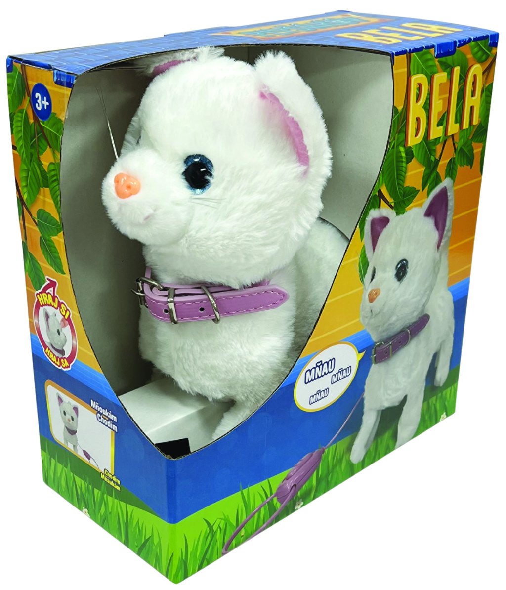 Kotka Bela na smyczy to idealna zabawka, która wnosi zabawę do Twojego domu. Dzięki sterowaniu na smyczy Twoja mała kotka może nie tylko iść do przodu lub stać, ale także miauczeć, poruszać głową i machać ogonem. Ta interaktywna zabawka ucieszy dzieci i dorosłych, przynosząc wiele radosnych chwil.
