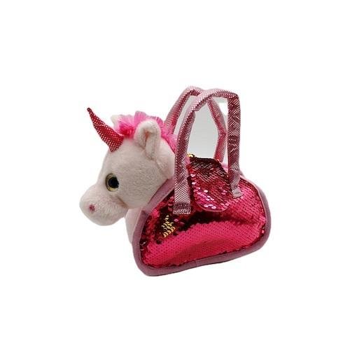 Pluszowy jednorożec w torbiePluszowy jednorożec to radość dla każdego maluszka. Maskotka umieszczona w cekinowej torbie w kolorze różowym,uwielbianym przez małe księżniczki.Milutka i mięciutka, doskonała do przytulania . przeczytaj całość
