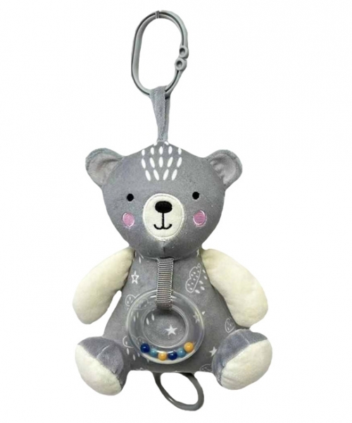 Závěsná plyšová hračka s chrastítkem Medvídek 18 cm - šedý