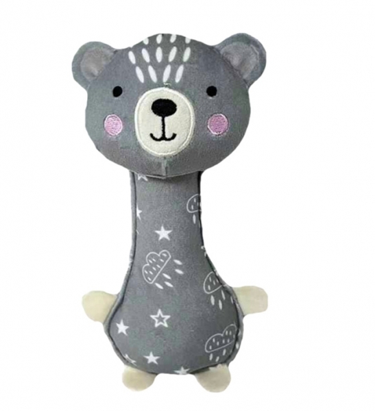 Látková hračka pískací, Medvídek, 17 cm, šedá