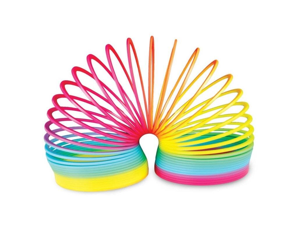 Zabawka doskonale znana od wielu lat. Sprężyna o początkowej wysokości 10.5cm wykonana została z wysokiej jakości tworzywa sztucznego. Kolorystyka płynnie przechodzi z jednej barwy do drugiej przez wszystkie kolory tęczy. Zabawka jest elastyczna i umożliwia wiele form zabawy. Najbardziej znaną zabawą jest spuszczenie sprężyny po schodach, która pokonuje kolejno wszystkie stopnie