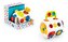 Podręczna skrzyneczka, wypełniona po brzegi zadaniami, aktywizującymi rączki malucha! Każda ze stron to inna, zręcznościowa zabawa. Jest tu włącznik do przesuwania, przycisk do klikania, wiatraczek, którym można kręcić za pomocą paluszka, trybiki i kluczyk do przekręcania, kuleczka do przesuwania...