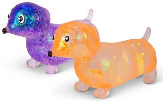 Uwolnij urok z Scrunchems Sugar Sausage Dog - najsłodszy dodatek do zespołu Scrunchems! Ściskaj te cukierkowe, inspirowane jamnikami pieski, aby doświadczyć przyjemności sensorycznej. Dostępne w czterech różnych kolorach - różowym, niebieskim, fioletowym i pomarańczowym - te urocze psiaki są gotowe, by wnieść odrobinę sprężystej radości do Twoich przygód zabawowych!