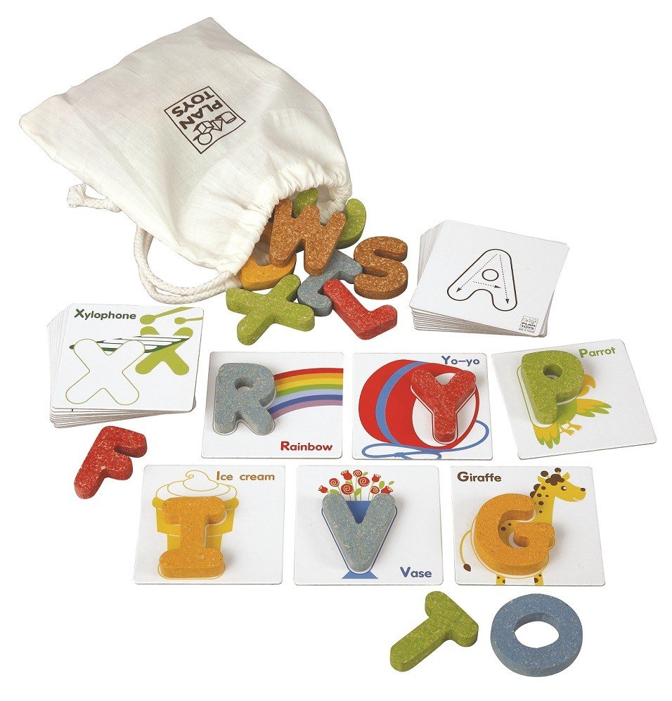 Sada pocházející z dílny společnosti Plan Toys obsahuje 26 základních písmen abecedy na oboustranných kartách.