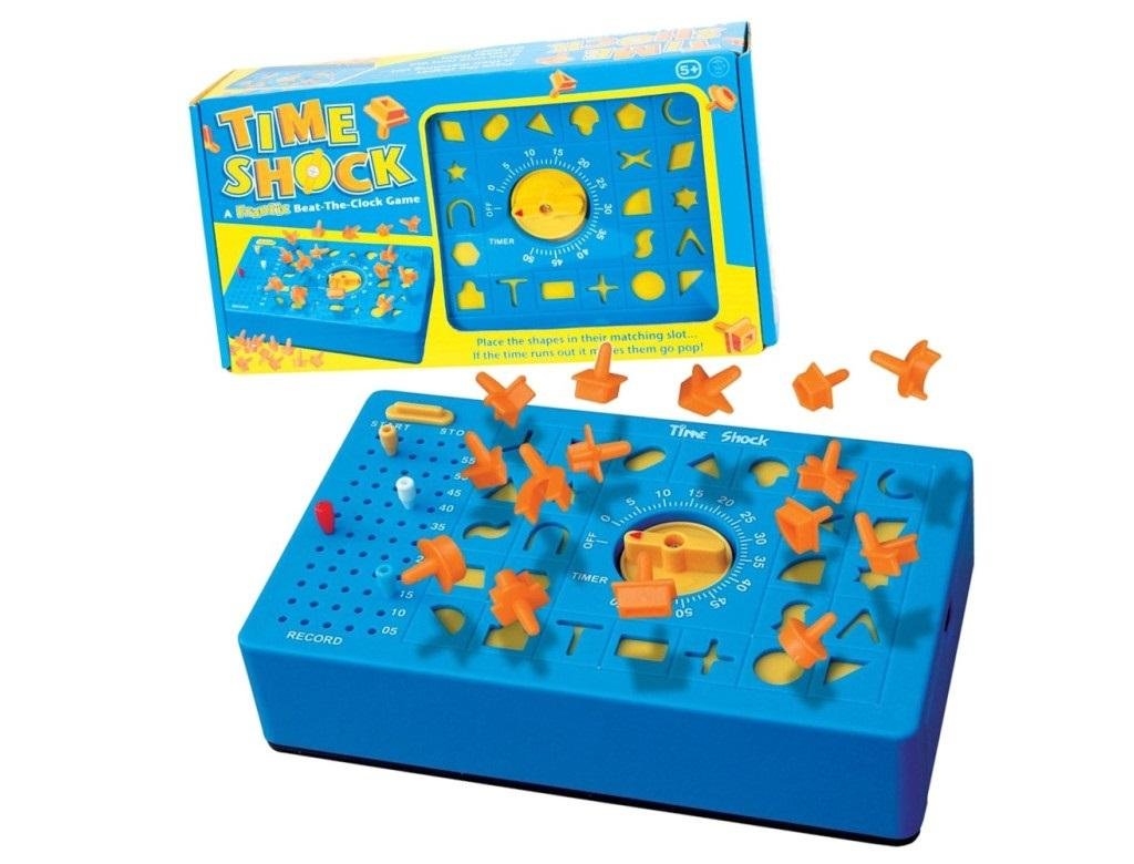 Ćwicząca nerwy i spostrzegawczość zabawka na refleks. Najpierw należy nakręcić zegar, a potem jak najszybciej dopasowywać kształty do odpowiednich otworów. Jeżeli nie zmieścimy się w określonym czasie, wówczas wszystkie figury zostaną wystrzelone w powietrze, a całość trzeba będzie zaczynać od... przeczytaj całość