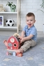 Wkładanka w kształcie domu ma dodatkowe atrakcje: klapkę na dachu z gumkami można otwierać i zamykać, co ułatwia wyjmowanie klocków obracające się krążki z wizerunkami pszczół i motyli obrotowy kwadrat z kogutem wygodny uchwyt na górze - do łatwego przenoszenia klocki w różnych kształtach z obrazkami zwierząt urocze, przyciągające wzrok kolory. Całość wykonana jest z trwałego materiału, tj. drewna. Po wrzuceniu wszystkich klocków do środka wystarczy otworzyć klapki na dachu, aby łatwo je wyjąć. Klocki są dość duże i dziecko może nie tylko wrzucać je do środka, dopasowując kształt do otworu, lecz także bawić się nimi osobno, układać obok domku lub wykorzystywać do tworzenia własnych opowieści.