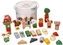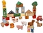 Zestaw składa się z 36 elementów: 9 figurek zwierząt, para rolników oraz klocki traktora w różnych kształtach z nadrukami drzew, zwierząt, owoców i płotów