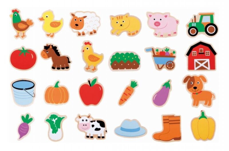 Lelin Dřevěná magnetická sada - Farma, 24ks