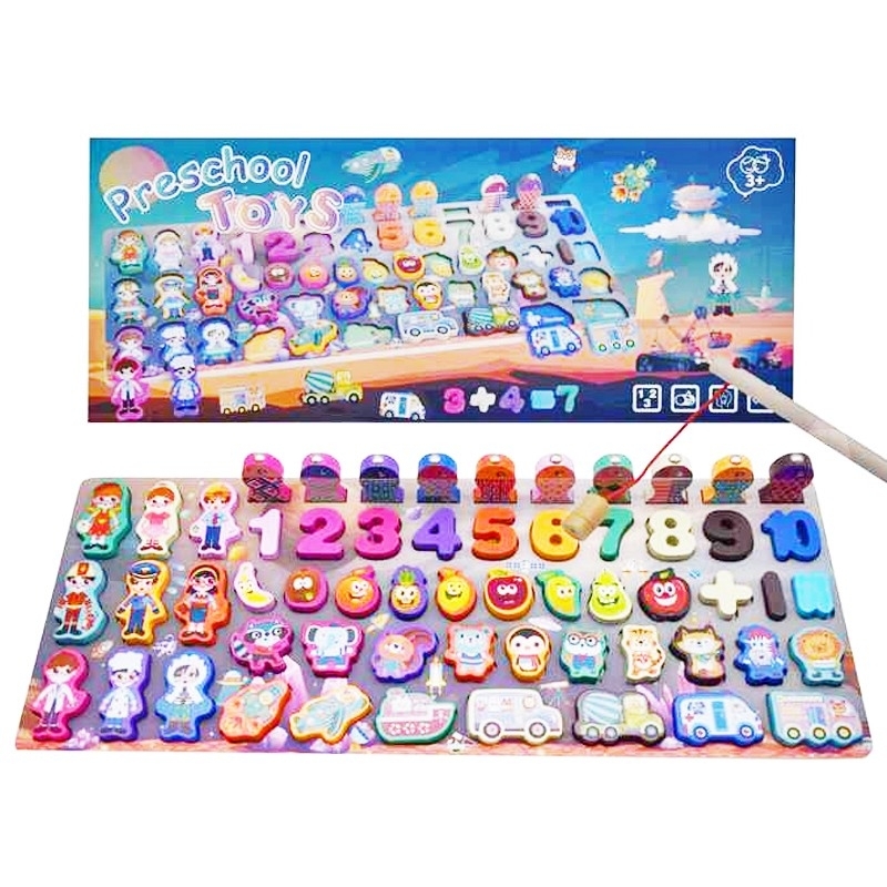 Naučná dřevěná hra, má rozměry 45x18 cm. Vhodné také jako pomůcka k procvičení angličtiny. Balení obsahuje barevné rybičky s čísly, udici, čísla, postavičky představující jednotlivé povolání, zvířátka a ovoce ke vkládání. Cena je za balení. Nevhodné pro děti do 3 let. przeczytaj całość