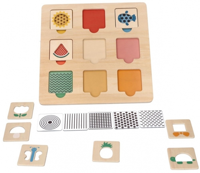 Dřevěná aktivní vkládačka/puzzle se vzory, přírodní