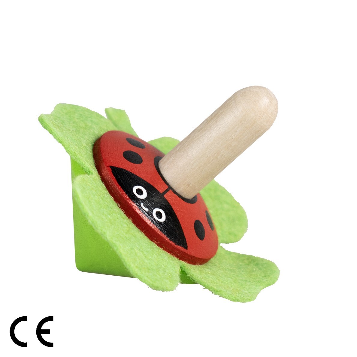 Dřevěná káča s motivem berušky na čtyřlístku. Dřevěná točící káča s plstí s motivem berušky pomáhá rozvíjet jemnou motoriku prstů. Průměr výrobku je 55mm. Výrobek splňuje požadavky EU na bezpečnost hraček. Vhodný pro děti od 3 let. przeczytaj całość