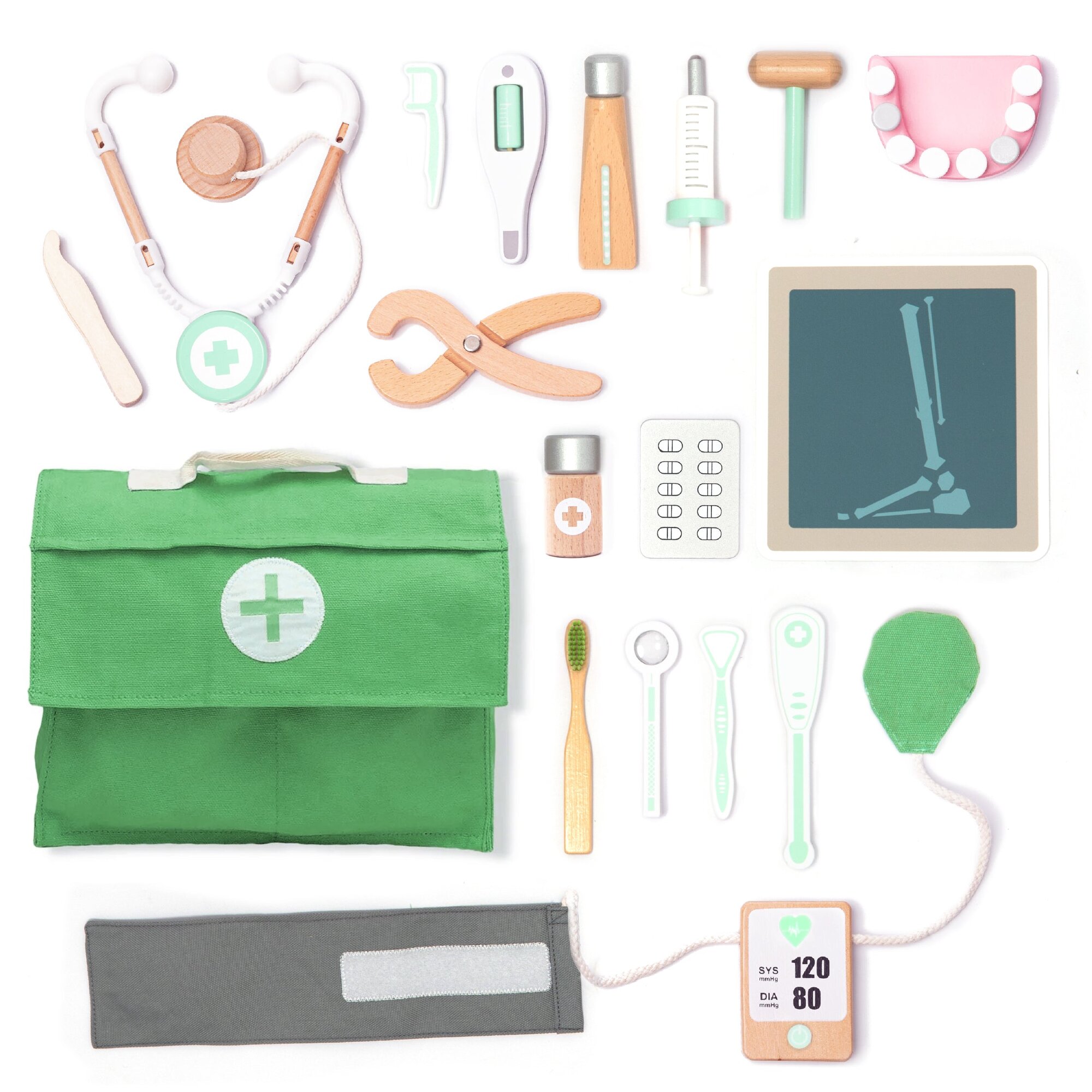 UMU® Doktorská sada pro děti 18 ks - Doktorský kufřík, Dřevěná hračka Zelená