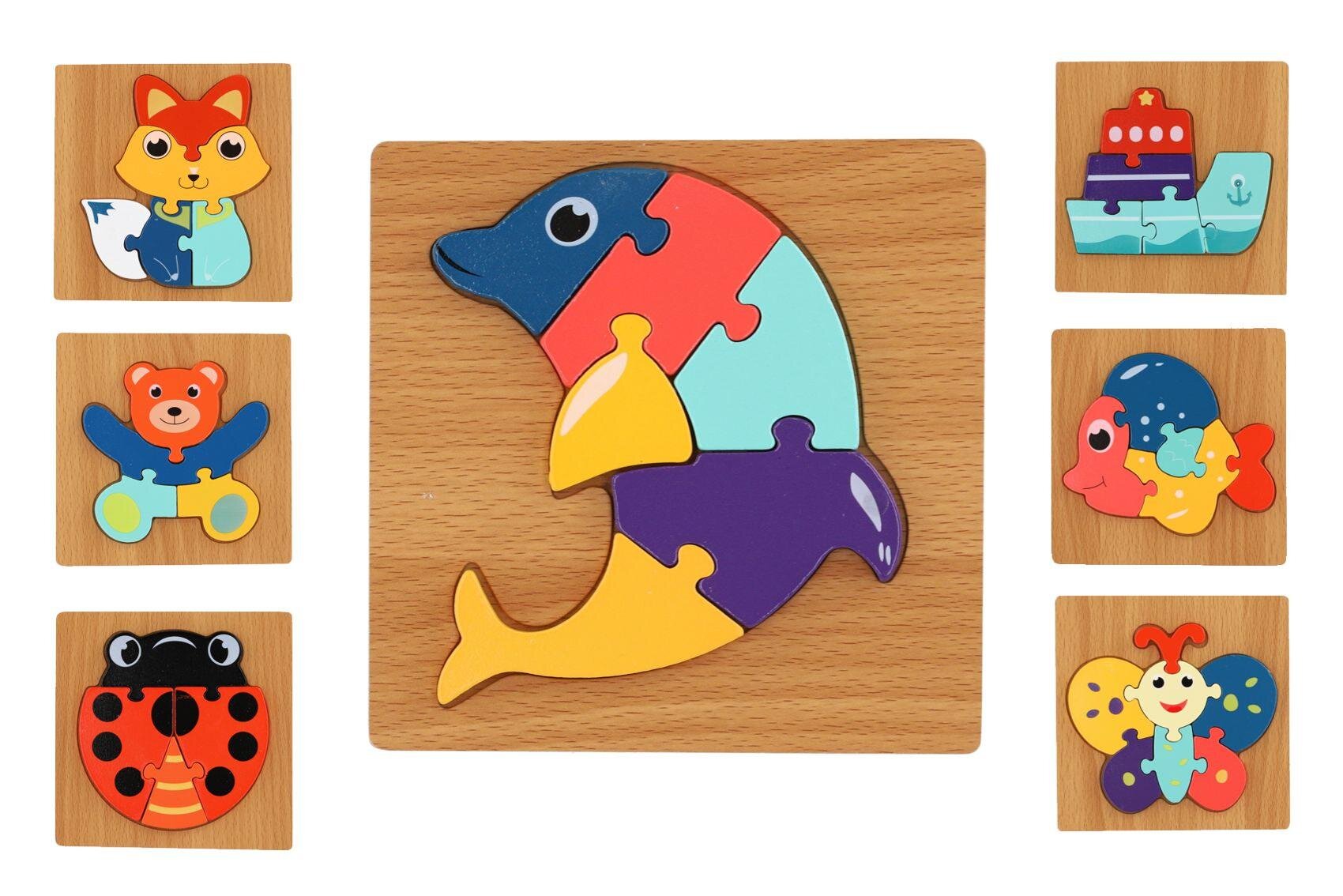 Vkládačka dřevěná zvířátka + dopravní prostředky mix druhů v sáčku