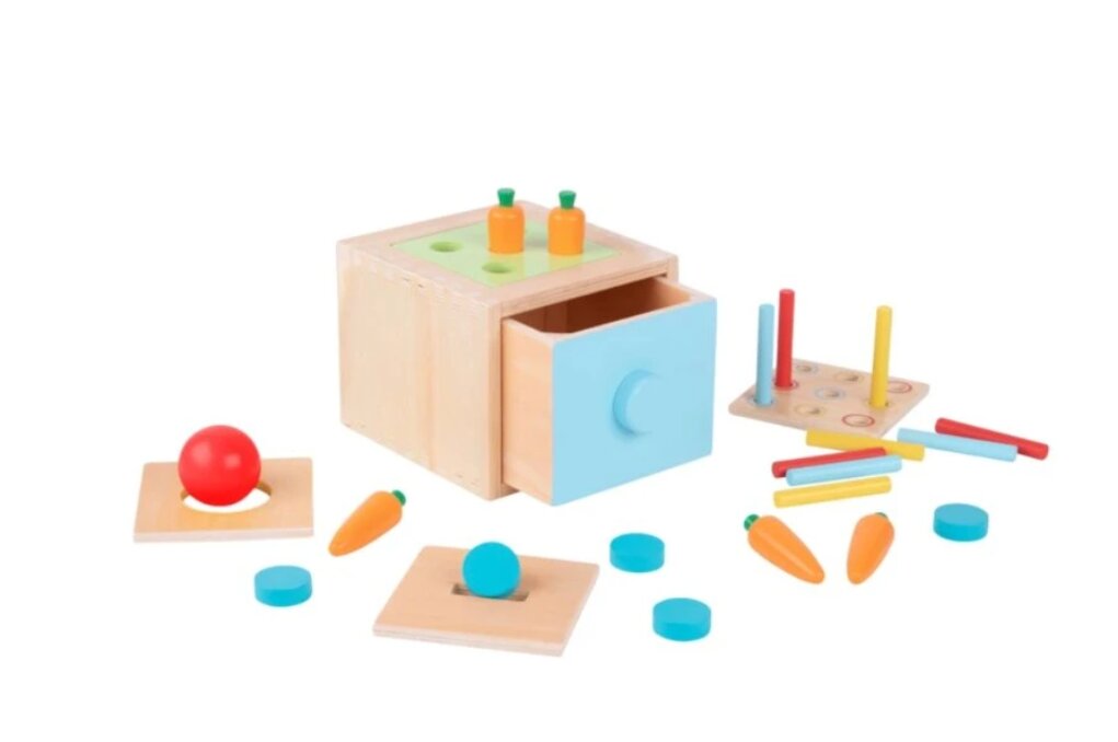 Montessori box Tooky Toy je multifunkční dřevěná hračka, která přirozeně roste s dítětem a nabízí čtyři různá vkládací cvičení pro různé věkové fáze. Skvěle podporuje jemnou motoriku, koordinaci, logické myšlení i zábavné učení formou hry. przeczytaj całość
