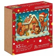Drewniane puzzle Świąteczni Przyjaciele od MilliwoodPrzenieś się do świata świątecznej magii razem z uroczymi bohaterami reniferkiem w czapce Mikołaja, wiewiórką i jeżykiem. Bajkowa ilustracja przedstawiająca spotkanie przy domku z piernika wprowadza w ciepły, zimowy nastrój i sprawia, że...
