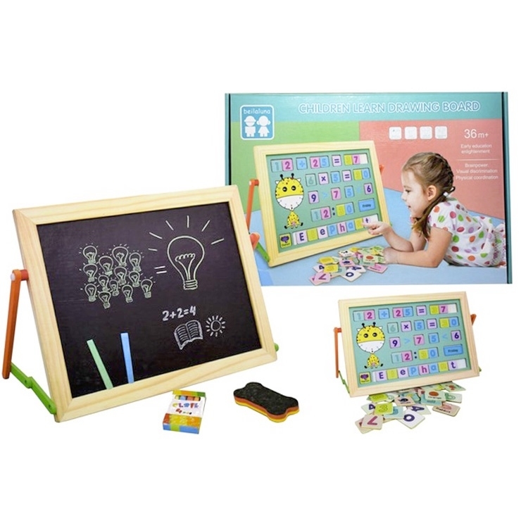 Veselá oboustranná tabule. Tabuli můžeš používat z jedné strany jako magnetickou nebo z druhé strany na psaní nebo kreslení křídou. Balení obsahuje dvoustranná tabuli se stojanem, 4ks kříd, fixu, houbičku na mytí, magnetické čísla, písmenka a brožurku s možnostmi tvoření pomocí magnetických... przeczytaj całość