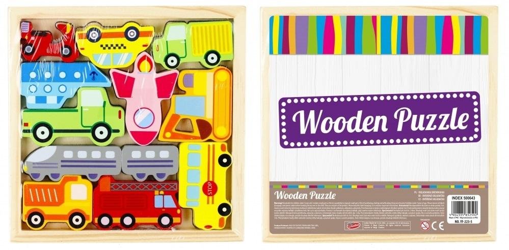 Układanka drewniana pojazdy 12 elementów