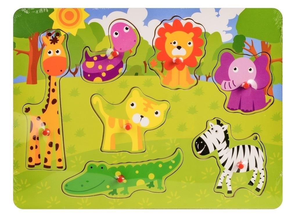 Układanka drewniana na dzieci, rozwija spostrzegawczość i koordynację wzrokowo-ruchową. Puzzle z uchwytami uławiającymi ich przenoszenie. Produkt przeznaczony dla dzieci powyżej 18 miesiąca życia, posiada certyfikat CE przeczytaj całość