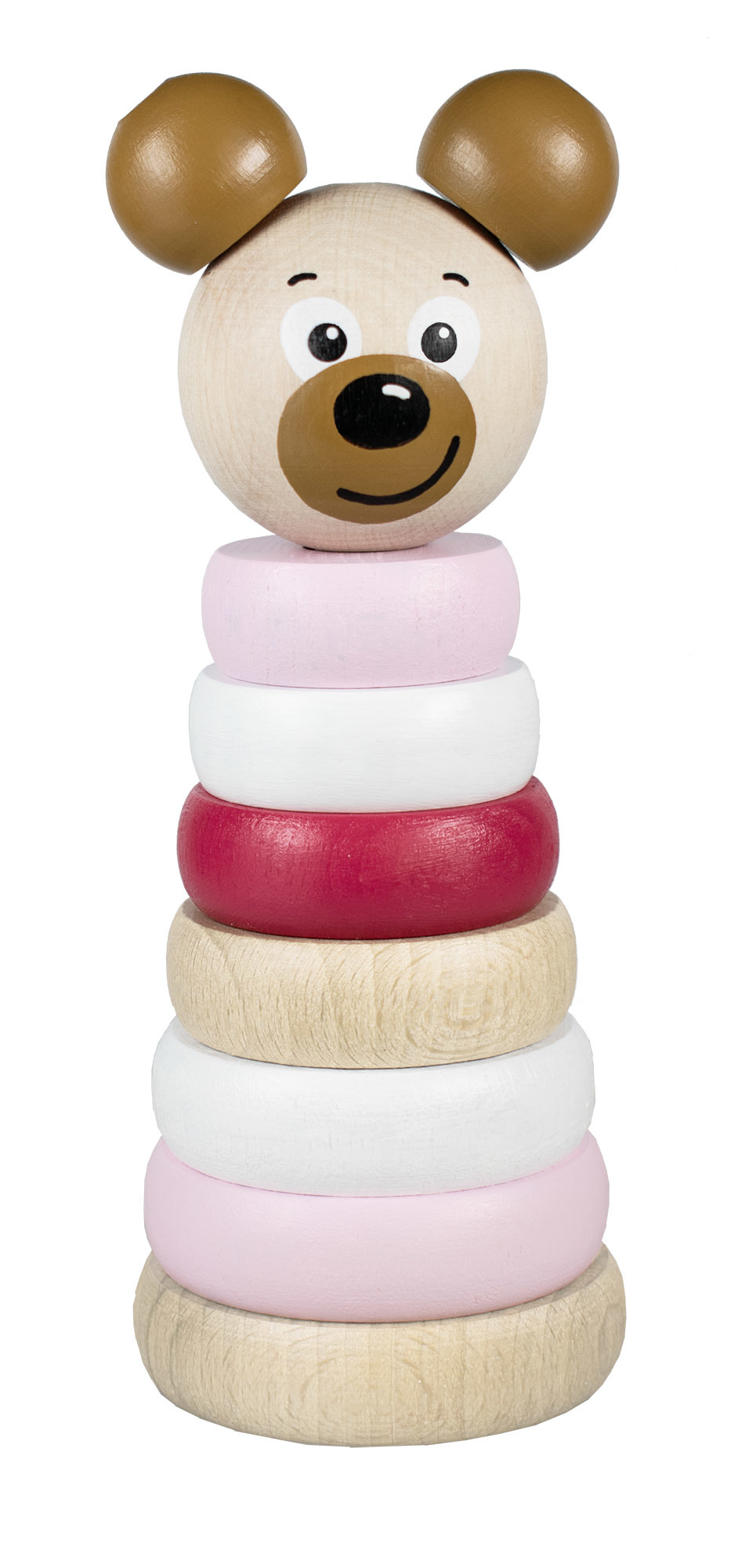 Dřevěná skládací pyramida s motivem méďi, rozvijí představivost, logické myšlení a motorické schopnosti dítěte. Výrobek splňuje požadavky EU na bezpečnost hraček a je vhodný pro děti od 1 roku. Rozměry výrobku jsou 140 x 55 mm. Výrobek je balen v ekologické papírové krabici. przeczytaj całość