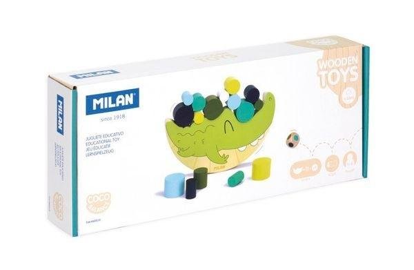 Drewniana zabawka edukacyjna "Balansujący krokodyl". Celem gry jest ułożenie kolorowych elementów na podstawie krokodyla. Zawiera figurkę w kształcie krokodyla, kostkę do gry i 18 cylindrycznych elementów. Od 1 do 6 graczy. Zachęca do obserwacji, rozwoju równowagi i koncentracji. Zalecana od 3... przeczytaj całość