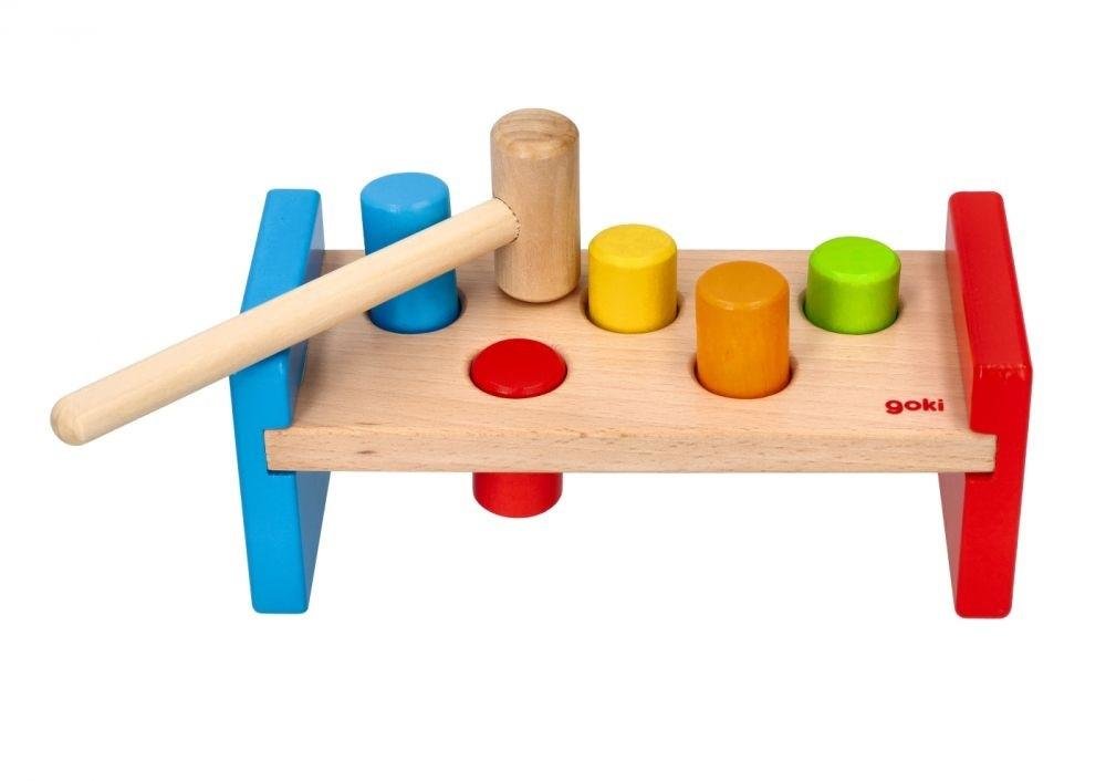 Drewniana ławeczka do wbijania kołków z młotkiem