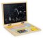 Laptop zamiast monitora ma magnetyczną tablicę, na którą dzieci mogą pisać i rysować kredą. Klawiaturę tworzą magnetyczne literki, cyfry i znaki, z którymi można układać słowa i zadania rachunkowe nie tylko na monitorze notebooka. Zabawka w przystępny sposób zapoznaje dzieci z literami i cyframi.