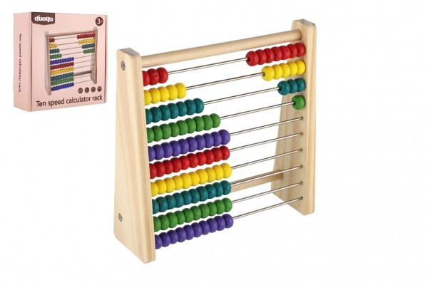 Počítadlo 100 kuliček dřevo 18x18cm v krabici 20x19,5x7cm