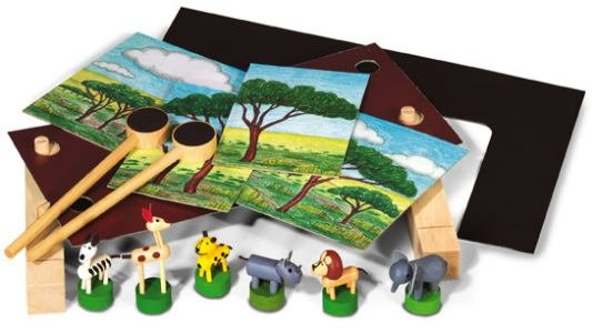 Magnetické divadlo Safari obsahuje podstavce, dvoje kulisy z tvrdého papíru, dvoje vodící hůlky v a 6 dřevěných figurek. Baleno v krabici z tvrdého papíru. Nevhodné pro děti do 3 let. Obsahuje malé části. Výrobek je zdravotně nezávadný. przeczytaj całość