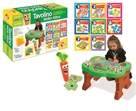 Veselý pan Mrkvička představuje vašim dětem úžasný multifunkční stolek. Děti si na něm mohou malovat, skládat puzzle nebo hrát hry. Děti se budou zábavnou formou seznamovat s písmenky, dopravními prostředky a povoláními. Nebo si mohou zahrát jednu ze dvou zábavných deskových her. Správné nebo špatné odpovědi prozradí pan Mrkvička svým souhlasným nebo nesouhlasným upozorněním.