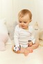 Grzechotka GaGaGu aktywuje słuch - dźwięk grzechotek jest miękki i przyjemny (niezbyt głośny). Grzechotka ma kontrastowe kolory i wzory, które stymulują wzrok dziecka. Pluszowe główki zwierzątek - małpka i panda - zachęcają dzieci do ich chwytania i wspierają ćwiczenie tzw. małej motoryki (ruchy palców i rąk) oraz naukę koordynacji ruchowej. Grzechotkę można przymocować na nadgarstku (specjalnym rzepem, bez ostrych włosków, można łatwo zapiąć) i używać jako zwykłej grzechotki, ponieważ pasek jest wykonany z miękkiego materiału i pozwala