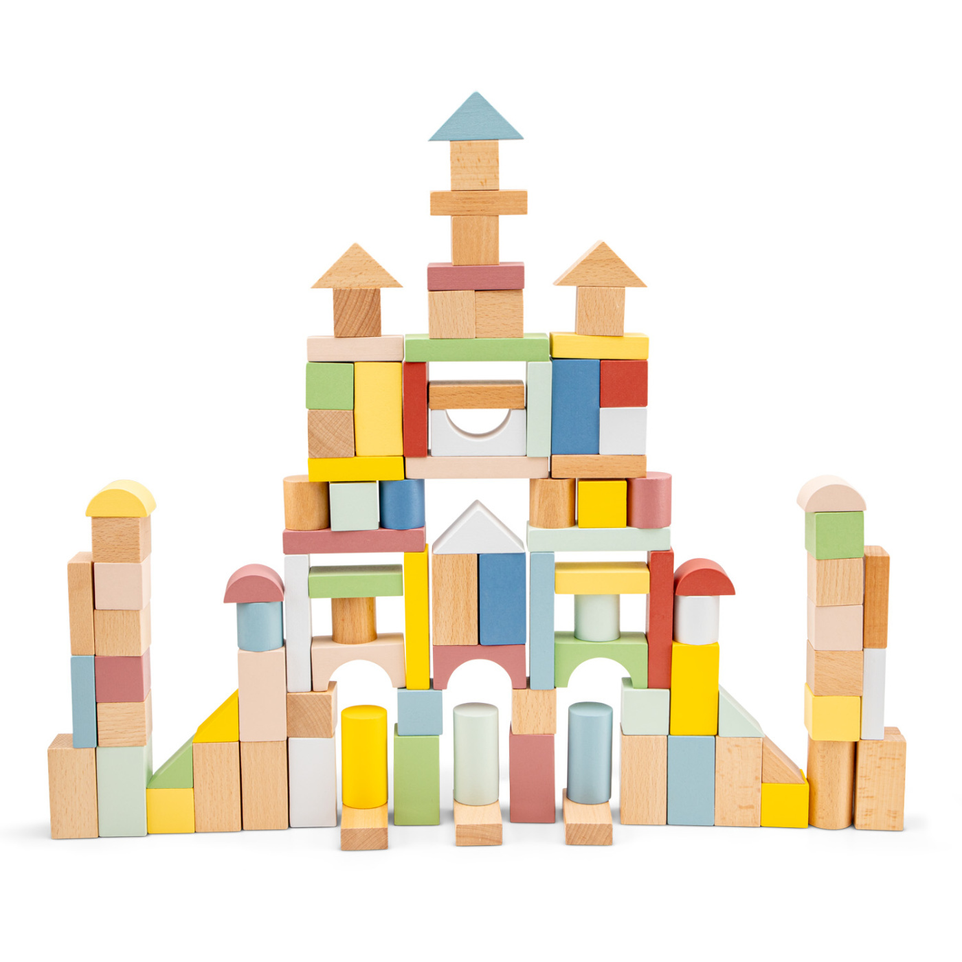 Perfektní stavební sada dřevěných kostek rozvíjí kreativitu dětí od 18 měsíců. Postavte společně s dětmi vysoké věže, hrady, domy a mnoho dalších konstrukcí. S každou hrou se děti učí nové dovednosti, aniž by si to uvědomovaly. Hra s kostkami podporuje podporuje jemnou motoriku a koordinaci...