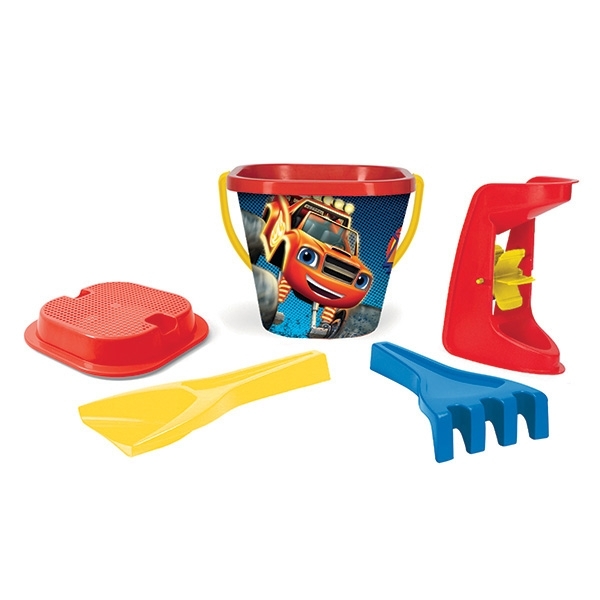 Komplet do piasku Blaze and the Monster Machines składający się z 5 elementów w klasycznych kolorach spodoba się wszystkim miłośnikom twórczej zabawy w piasku. W skład zestawu wchodzą: wiaderko, łopatka, grabki, sitko i młynek. Poszczególne elementy posiadają ciekawą grafikę wykonaną metodą IML....