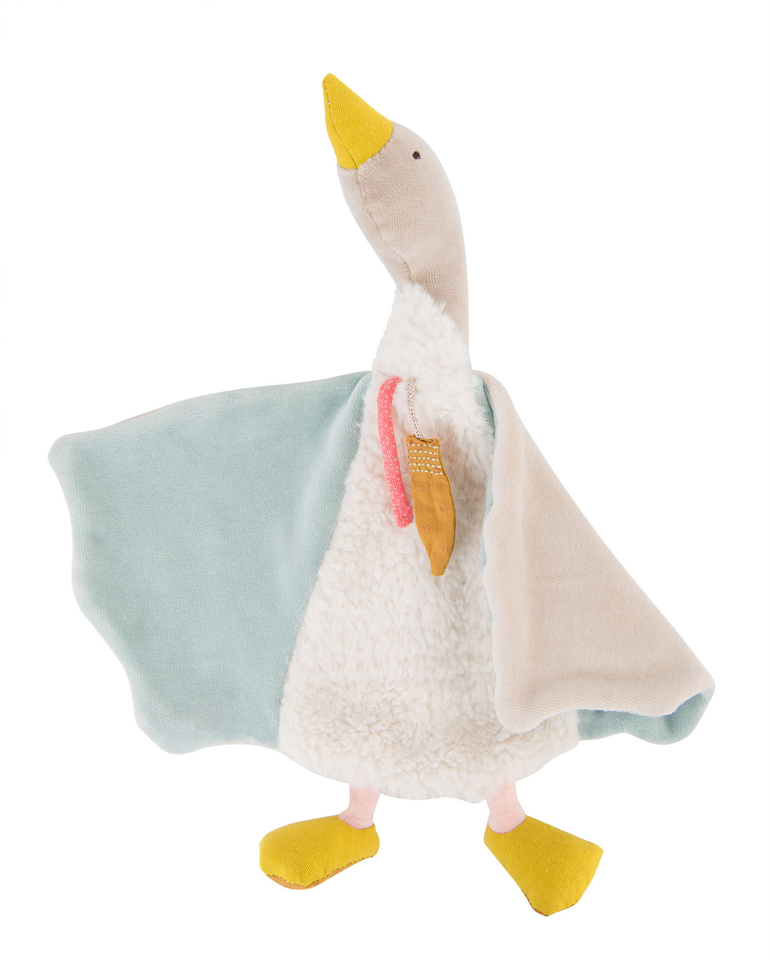 Heboučký ubrousek v podobě husy Olgy budou děti milovat a už nebudou chtít usínat bez něho. ubrousek je o velikosti o 37 cm. Heboučký mušelínový materiál je skvěle uspí. przeczytaj całość