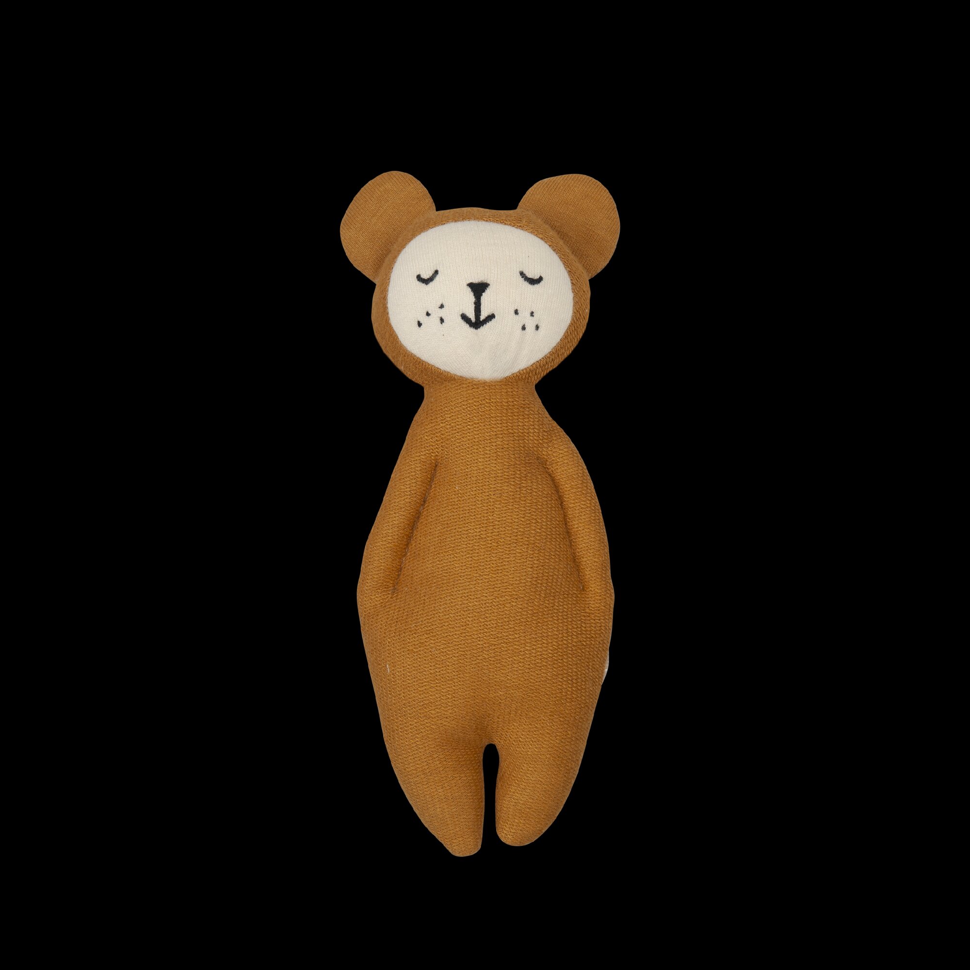 Měkkoučký medvídek na mazlení od Fabelabu. Příjemný materiál, chrastící ouška a bříško rozvíjí hmatové smysly dítěte, uklidňuje a pomáhá při uspávání. Rozměr 15 cm , 100% organická bavlna przeczytaj całość