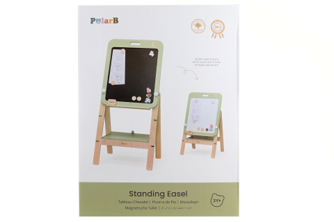 Dřevěná tabule o rozměrech 46x42x97,5 cm. Nastavitelná výška (3 polohy). Součástí balení obrázky a magnetky se zvířátky. Rozměry balení cca 47x63x8 cm. Věk 3+ przeczytaj całość