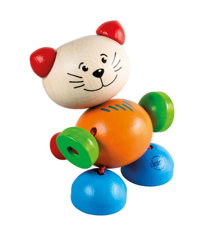 Hračka z barevných dřevěných dílků navlečených na gumě, které se pohybují, točí a ohýbají. Vhodná k procvičování jemné motoriky rukou Vašich dětí. Délka hračky je 8 cm a je připevněna na ekologické papírové kartě. Nevhodné pro děti do 8 měsíců. Možnost poranění v oblasti krku. przeczytaj całość