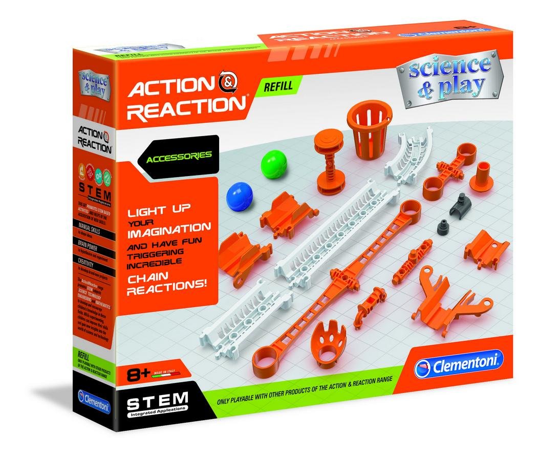 Zestaw uzupełniający, kompatybilny z serią Akcja-Reakcja, z wieloma dodatkowymi elementami, dzięki czemu można tworzyć jeszcze dłuższe obwody!Rozwiń swoją wyobraźnię i stwórz jeszcze więcej ekscytujących torów! przeczytaj całość