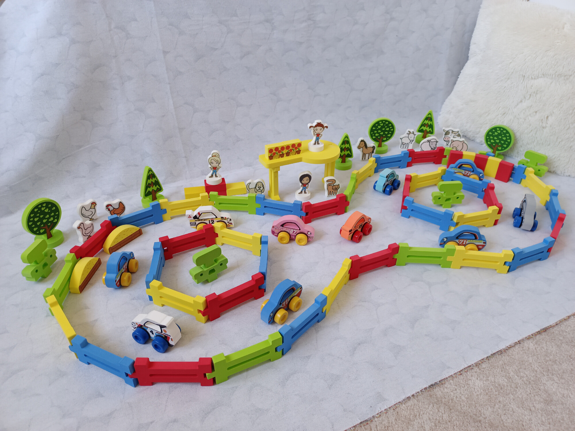 FOAMINIS Terénní dráha s auty, 100 dílů, pěnová stavebnice
