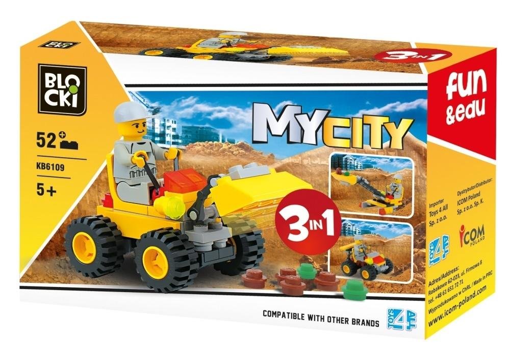 Klocki Blocki My City 3w1 - 50 elementów.Rewelacyjny zestaw klocków dla małych budowniczych.Klocki Blocki są kompatybilne z klockami innych firm.Klocki są wykonane z wytrzymałego plastiku w żywych kolorach.Ponadto, klocki zachwycają dużą ilością ruchomych elementów.Twoje dziecko czeka sporo...