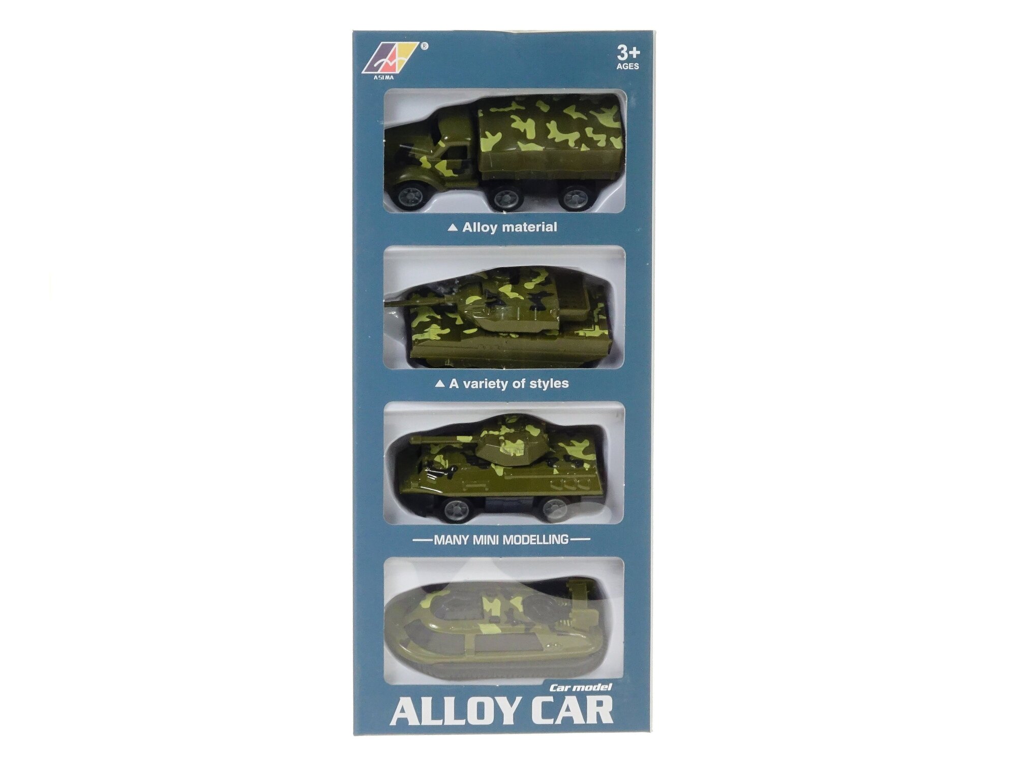 Sada 4 vojenských vozidel, kovová; 23,5x10x4cm, W/B