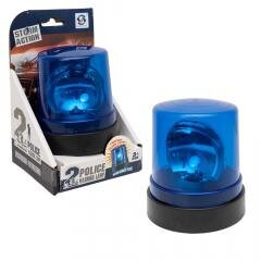 Niebieski sygnalizator policyjny, lampka ostrzegawcza. Po włączeniu sygnalizator uruchamia migające, niebieskie światło oraz charakterystyczny sygnał ostrzegawczy. Wymiary opakoawnia: 11 x 11 x 17 cm Wymiary produktu: 9.5 x 9.5 x 10.5 cm Wiek: 3+ Zasilanie: 2 baterie AA (niedołączone) przeczytaj całość